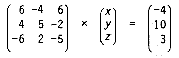 6x + -4y + 6z = -4 4x + 5y + -2z = 10 -6x + 2y + -5z = 3becomes