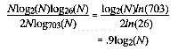 Next, consider the case of a relatively long variable-length key, as, for example, keys made of random alphabetic characters. Using the Postman's Sort and taking two characters at a time, the first pass through the file will generate 703 sublists. Each sublist will, in turn, be distributed among 703 sublists, etc., until each sublist has only one record. Hence each record will be addressed approximately log703(N) times where N is the number of records in the file. The total number of primitive operations will be 2Nlog703(N).