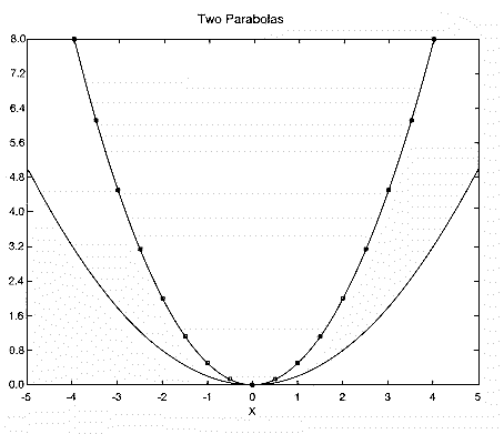 for loops were used to defined two parabolas defined by differing numbers of points.
