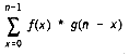 F{f * g} = F{f} * F{g}In the continuous domain, convolution operates on functions. But in practical engineering, discrete data is the rule. Such digitally-sampled waveforms might be downloaded from oscilloscopes or read from audio samplers in the backplane of your computer. In the discrete domain, the integral becomes a summation: