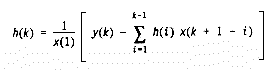 3. The impulse response, known or not, must have an area between -1 and +1. Otherwise the system response is not passive, because it is amplifying the input. The described technique does not converge if this is so. You can measure the area of the impulse response if it is the known function under the summation by adding all of the elements in the array. If the system response is unknown and has an area greater than one, the given technique will not give a good answer.