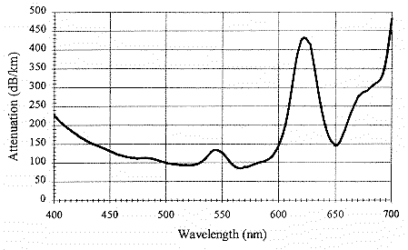 Typical attenuation of optical fiber