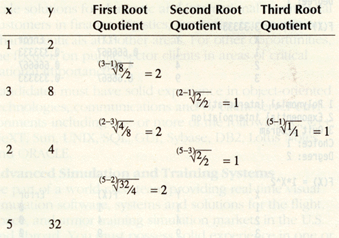 Table 4 Root quotient table of y = 2
