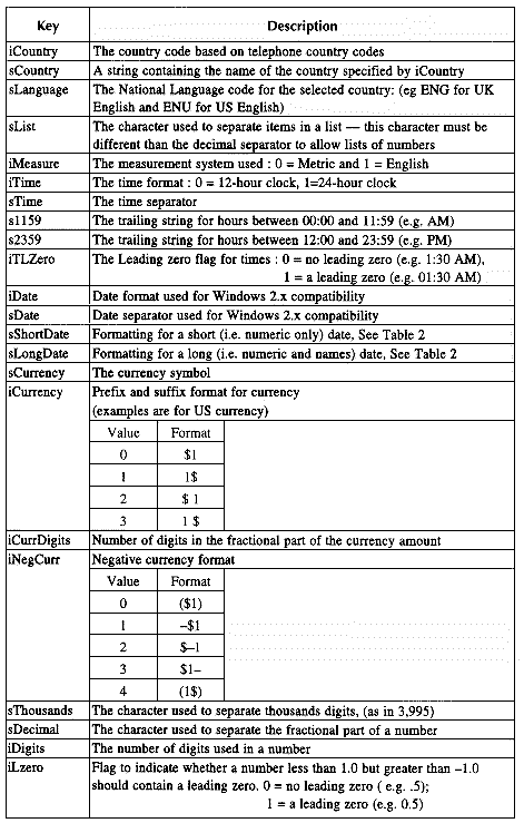 Key values for the [intl] section of WIN.INI.