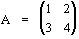 Matrix<float> A(2,2); A(0,0) = 1; A(0,1) = 2; A(1,0) = 3; A(1,1) = 4;in C++, and the column vector