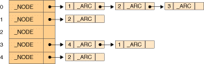 Figure 2: The arc-adjacency list representation of the sample network