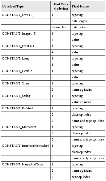 Table 5: Structure of constant pool entries