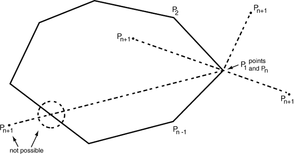Figure 4: An intermediate convex hull, with possible locations of next point