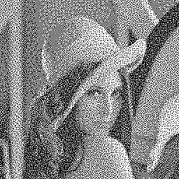 Figure 1: The "Lena" image dithered along a Hilbert curve, with continuous error propagation