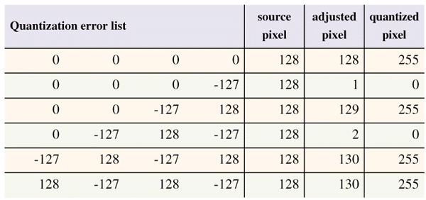 Table 1: Limiting accumulation of quantization error to the four most-recent pixels