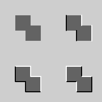 Image 4: Simple depth image (upper left quadrant) and embossing results of masks 0, 2, and 1 (going clockwise)