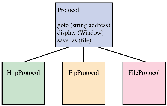 Figure 1: Class hierarchy that supports multiple protocols with a common interface