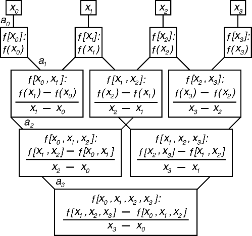 Figure 2: A divided-difference table for interpolation using Newton polynomials given four points