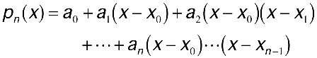 In the previous section, you saw how the Lagrange form is one alternative to the power form for representing a polynomial. Another polynomial form relevant to interpolation is the Newton form, shown below. Provided an is nonzero, this polynomial is said to be of degree n.