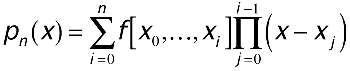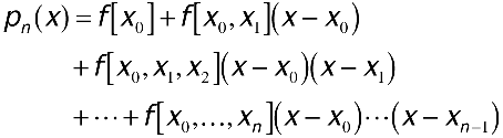 This is the Newton formula for the interpolating polynomial, which is often written more succinctly in the form that follows. Each f[x0,...,xk] is the kth divided difference of f(x) at points x0,...,xk.