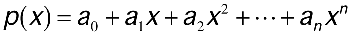 The polynomial that satisfies this is said to interpolate the function f(x). For a set of n + 1 points, this polynomial is of degree <= n. The importance of p(x) is that once you have found it, you can use it to approximate f(x) at values of x not in x0,...,xn, provided these values are on the interval I. The standard way to represent a polynomial in mathematical discussions is in the power form, shown below. This is generally the most familiar form. Provided an is nonzero, this polynomial is said to be of degree n.