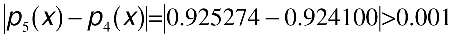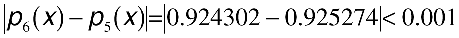 f(0) = 0.0 f(p/4) = 0.7071068 f(p/2) = 1.0 f(3p/4) = 0.7071068 f(p) = 0.0 f(5p/4) = -0.7071068 f(3p/2) = -1.0 f(7p/4) = -0.7071068 f(2p) = 0.0To compute the value of f(x) at x = 3p/8 = 1.17810 so that |pk(x) - pk-1)(x)| < 0.001 (k >= 1), for example, you end up computing p0(x),...,p6(x). This process is illustrated below.