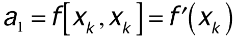 The variables x0,...,xn-1 are centers, and in the case of polynomial interpolation, are the first n of the n + 1 interpolation points. To construct the interpolating polynomial in the Newton form, replace each ak with f[x0,...,xk], k = 0,...,n.