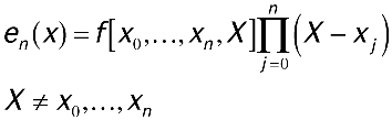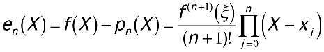 This still doesn't help you much, though, because to compute f[x0,...,xn, X], the need for f(x) remains. However, it turns out that f[x0,...,xn, X] is closely related to the (n + 1)st derivative of f(x). Therefore, when you know a bound for f(n + 1)(x), call it M, over the entire interval you are interpolating, you can use it to obtain a bound (albeit a broad one) for the error. Considering this, the formula below is used to estimate interpolation error.