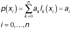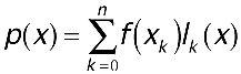 In other words, the coefficients a0,...,an in the Lagrange form are the values of the polynomial p(x) at the points x0,...,xn. Replacing a0,...,an with the values of f(x) at x0,...,xn yields the following formula, which produces a polynomial of degree <= n that interpolates f(x) at x0,...,xn.
