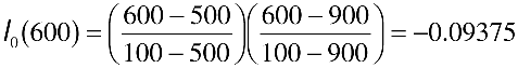 This example uses Lagrange polynomials to interpolate a function f(x) describing the lift produced by the wing of a large commercial aircraft as a function of airspeed at a fixed altitude and wing configuration. Suppose you know the values of f(x) at x0 = 100 ft/sec, x1= 500 ft/sec, and x2 = 900 ft/sec, which are as follows: