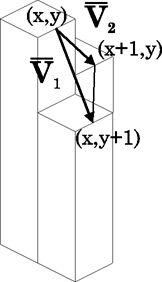 Figure 4: Deriving the surface slope given a depth image pixel and two of its neighbors