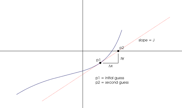 Figure 1: The Newton-Raphson method applied to system of one nonlinear equation