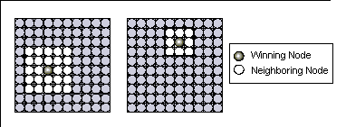 Figure 3: Rectangular neighborhoods in the Kohonen layer