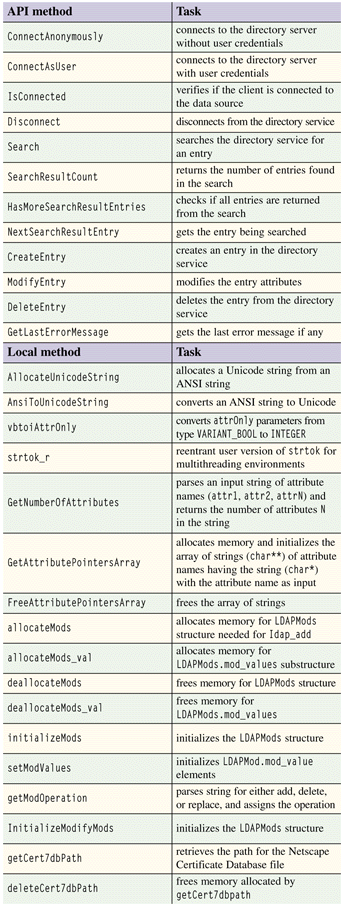 Table 1: Methods of class CLDAPConnection
