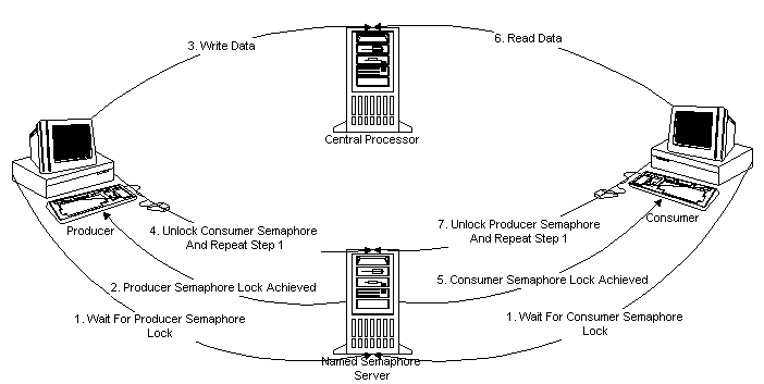 Figure 1: Illustrates use of the named semaphore server in a producer/consumer system