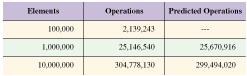 Table 1: Comparing actual number of operations required to predicted number of operations in quicksort algorithm