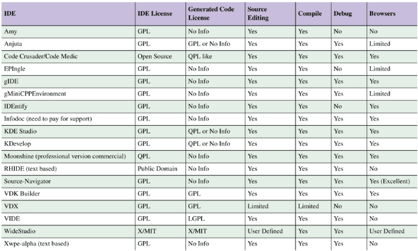Table 1: Open source IDEs. Full list available at http://ide.sourceforge.net
