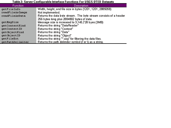 Table 2: Server configurable interface functions for USGS DTED datasets