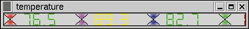 Figure 6: A set of GtkSegment widgets packed into a ticker widget, GtkTicker