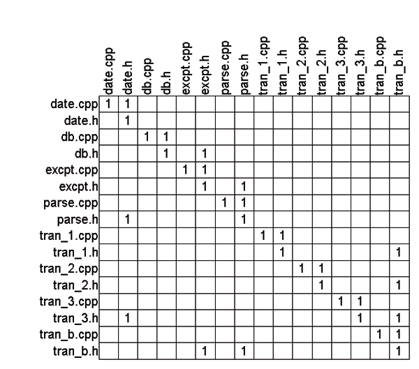 Figure 4: A matrix graph of the files composing the project as it exists in