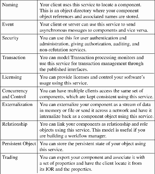 Table 1: The most commonly used CORBAServices (see the OMG website or vendor documentation for details and options)