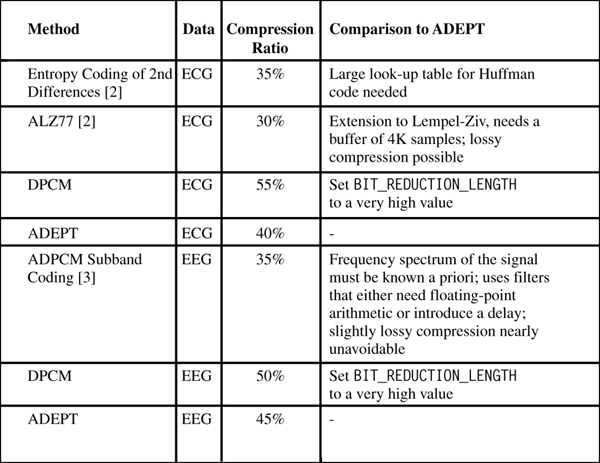 Comparison of ADEPT to lossless ECG and EEG compressors
