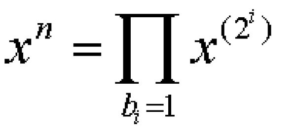 where each bi is either zero or one. Since x(a+b) = xa * xb, the power xn can now be written as follows: