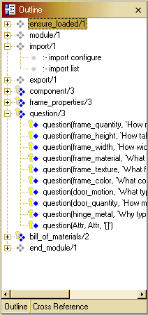 The Prolog source code outline view