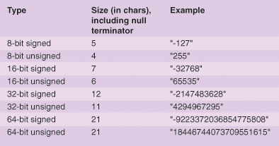 Required buffer sizes for integer conversion
