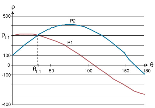 Two sinusoidal curves corresponding to points