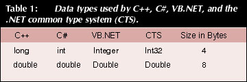 Data types used by C++, C#, VB.NET, and the .NET common type system (CTS).