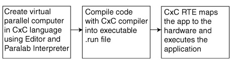 Application development and execution with CxC is a three-step process: (a) Paralab and CxC editor; (b) CxC compiler; (c) CxC runtime environment.