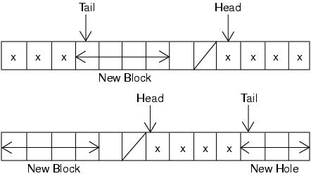 Figure 4: Allocating a block of size 3 (two cases).