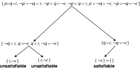 Figure 2: Working of the DP algorithm on an example CNF formula.