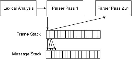 Figure 1: The steps the parser uses to create messages and frames, and analyze the messages.