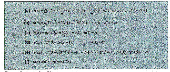 /n in the upper part. Figure 1 (a) presents an equation--here, a recurrence--for the mean running
