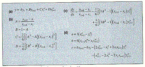 Given a data set described by the general function yj = y(xj), the linear interpolation in the interval between xi and xi+1 can be expressed as Figure 1 (a), where " denotes the second derivative and Figure 1 (b) is true. The first derivative of Figure 1 (a) is denoted as dy/dx and is solved as Figure 1 (c).