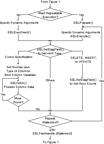 The body of the DoStatement() function in Listing Two is built around a switch statement that processes the results of an SQL statement based on the return value from the SQLGetDiagField call in Listing One. In the case of a SELECT statement, which requires its own complex processing, the function calls another user-defined function, DoSelect(); see Listing Three. In the case of an UPDATE, DELETE, or INSERT statement, the DoStatement() function calls the CLI diagnostic function SQLGetDiagField to find out how many rows were affected by the statement, then calls SQLEndTran to commit the transaction. The function prints one message indicating whether the commit was successful and another giving the number of affected rows.
