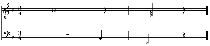 The add is done in CTrack::AddKeySignature(). As can be seen in track.cpp (available electronically), the track-level key signature function builds a 4-byte array consisting of the proper event type, proper data length, number of sharps or flats, and minor flag. The byte array is placed into an event constructed to add the key signature at 0 delta time. The new event is then placed at the beginning of the track, and the track length is adjusted accordingly. Figure 4 shows the result. Any decent scoring package will pick up the one-flat key signature. It should also add the cancel sign for the treble-clef B natural accidental in the first measure. (I used Voyetra's Orchestrator Plus to prepare the figures, and it did both.)